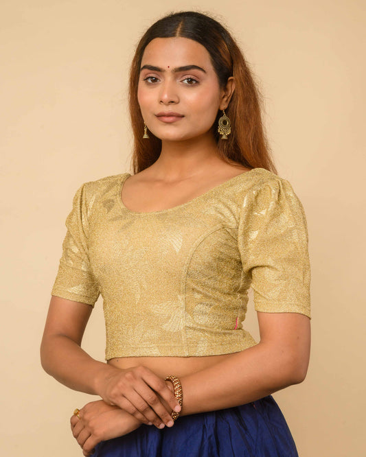 Mithila Metallic Champagne Gold Puff Sleeve Stretchable Saree Blouse Advi