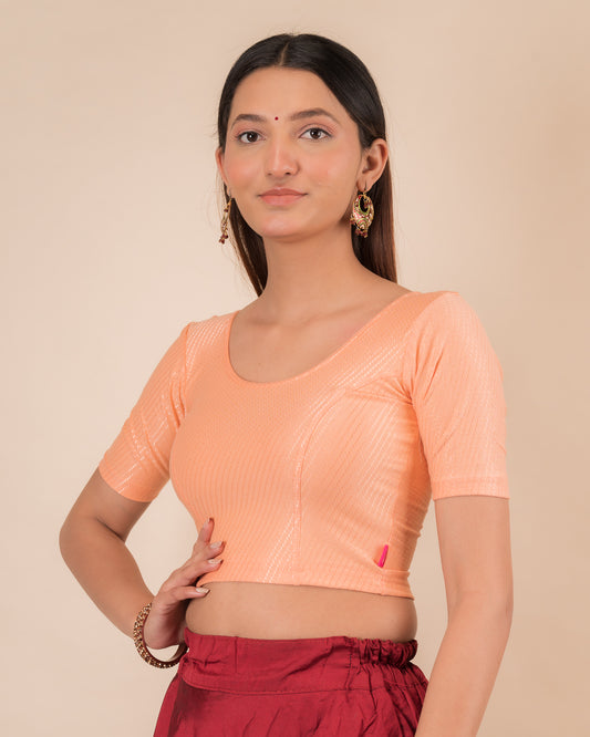 Dobby New Peach Cotton Stretchable Elbow Sleeve Blouse by Advi