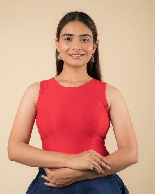 Jyoti Red Cotton Sleeveless Jacquard Self Design Stretchable Blouse by Advi