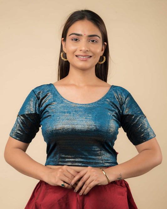 Tia Green Readymade Blouse with Zari Buti Work | Perfect For Silk Saree