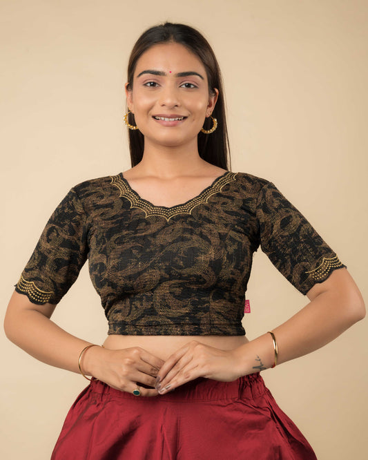 Ravina Black Embroidered Traditional Readymade Blouse | Festive Wear