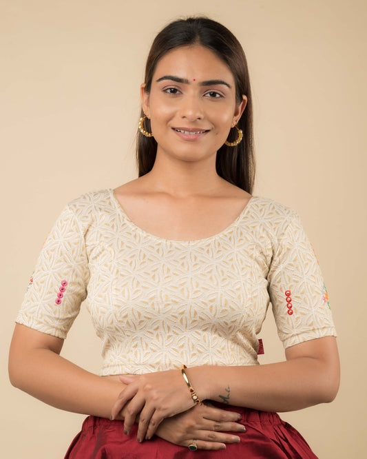 Vajra Beige Bajuband Embroidery Work Stretchable Saree Blouse