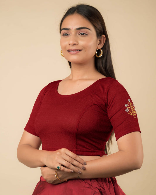 Vajra Maroon Bajuband Embroidery Work Stretchable Saree Blouse – Advi