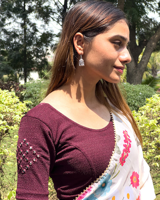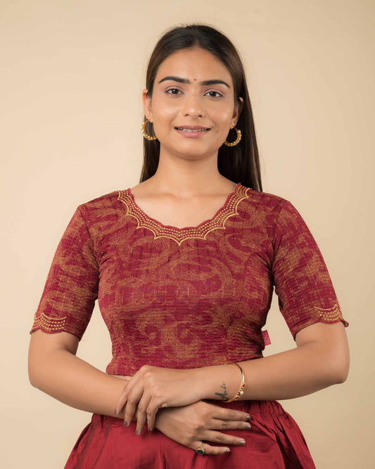 Ravina Maroon Embroidered Readymade Saree Blouse | Wedding Perfect | Stretchable Fit