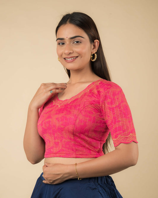 Ravina Rani Scallop Cut Work Neckline Readymade Blouse | No Stitch | Party Wear