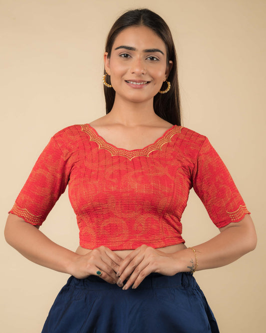 Ravina Red Zari Embroidered Readymade Blouse | Perfect for Silk & Banarasi Saree