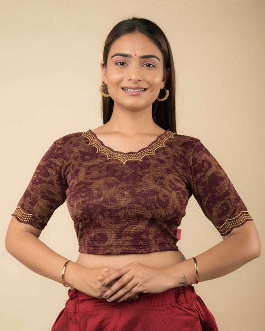 Ravina Wine Traditional Readymade Saree Blouse | Stretchable Fit | Festive & Wedding Wear