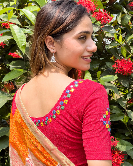 Siddhi Multicolour Mirror Work Red Saree Blouse | Stretchable Festive Wear