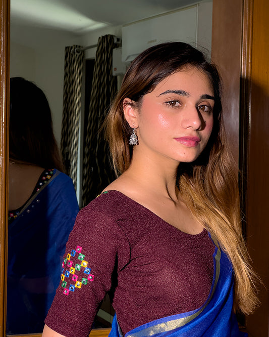Siddhi Multicolour Mirror Work Wine Saree Blouse | Festive Readymade Fit
