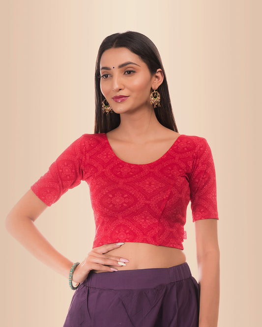 Khwaab Red Chikankari Jacquard Elbow Sleeve Stretchable Blouse by Advi