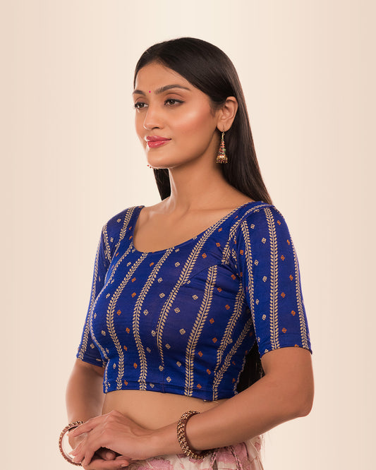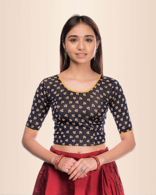 Urvi Navy Self Zari Jacquard Blouse with Boat Neck Metallic Advi