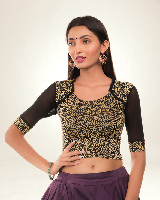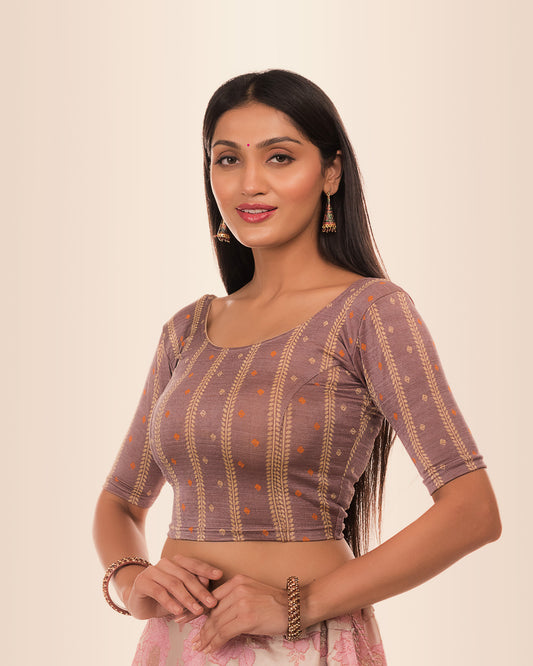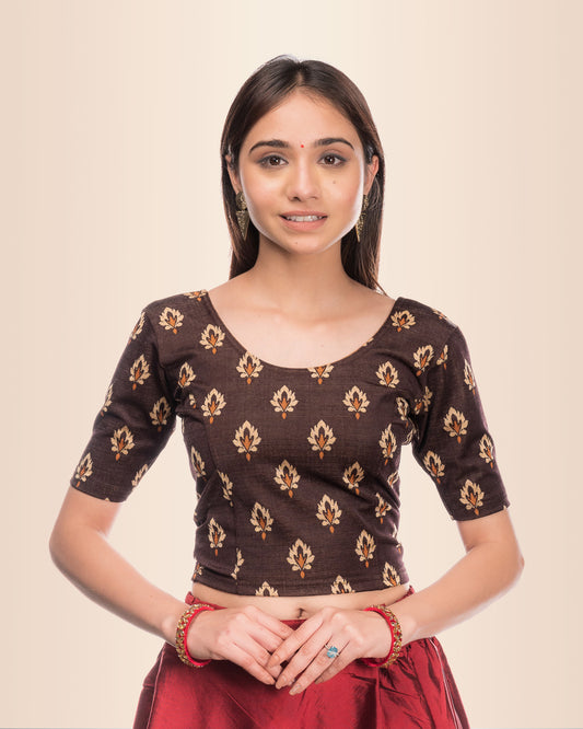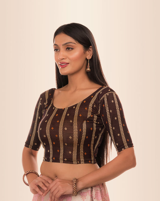 Kavana Coffee Multicolour Buti Stretchable Elbow Sleeve Blouse Advi