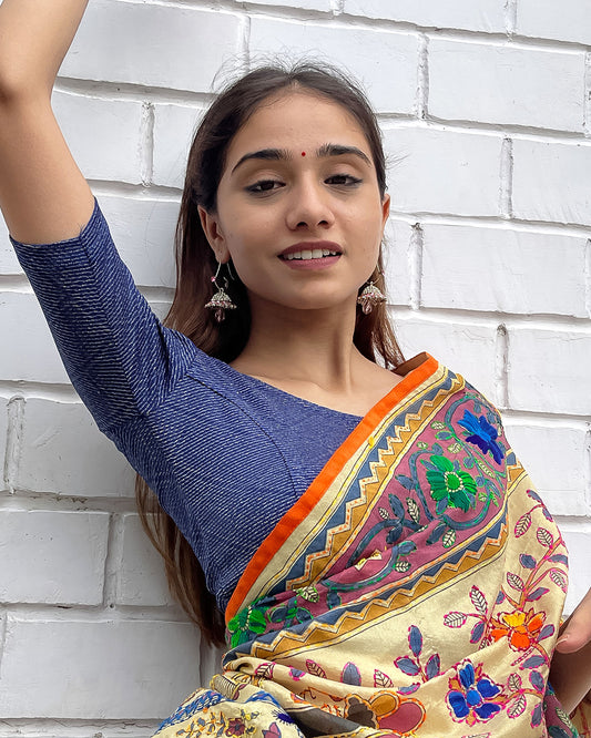 Mehreen Blue Multicolour Jacquard Blouse with Fancy Stripes by Advi