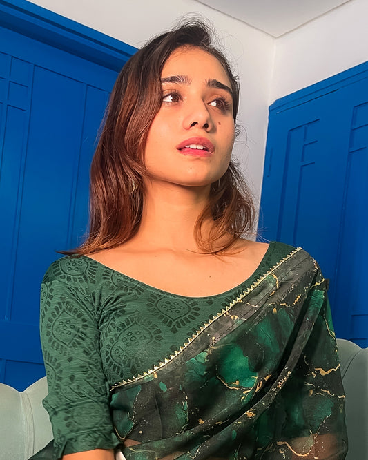 Shehzaadi Green Elbow Sleeve Blouse with Ruffle Detail by Advi