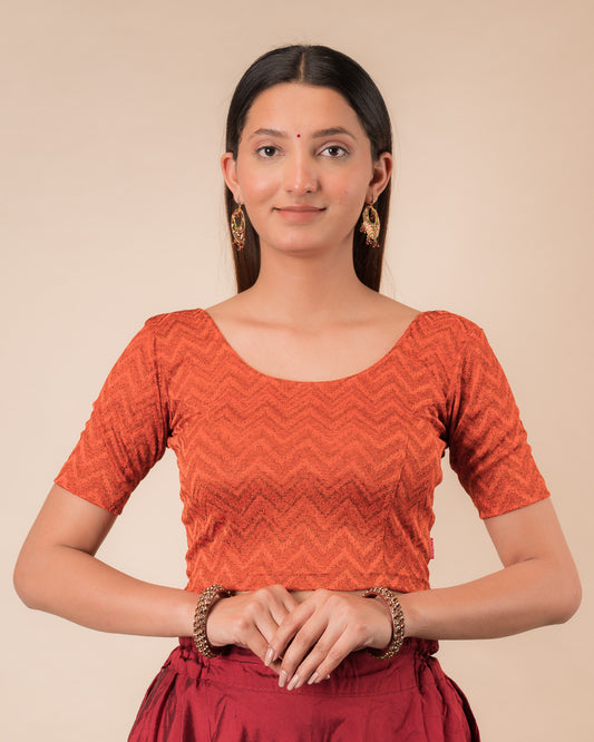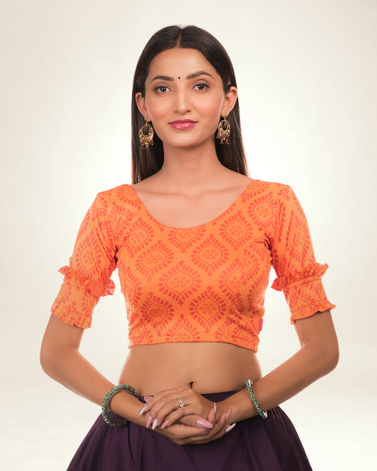 Nandini Geometric Pattern Orange Melange Stretchable Blouse Workwear Advi