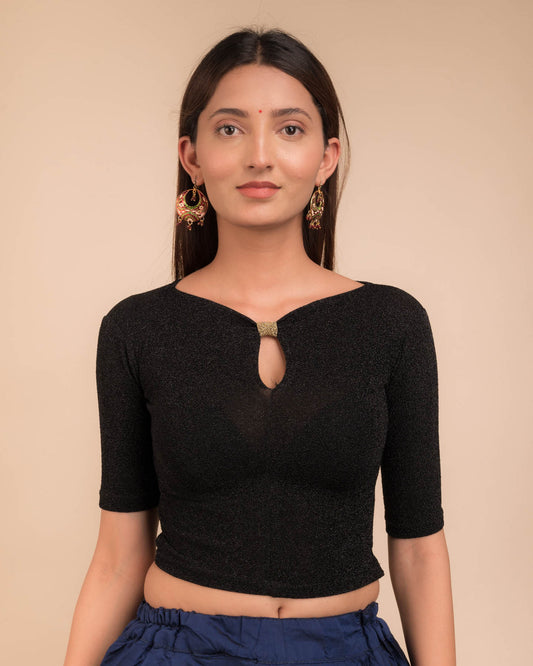Shehla Black Metallic Zari Bow Blouse with Lurex and Slip On Style by Advi