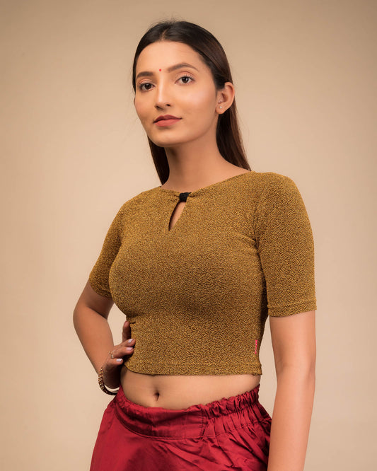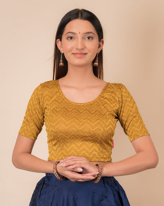Nandini Mustard Yellow Geometric Pattern Melange Stretchable Blouse Advi
