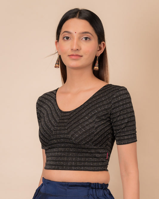 Raag Zari Stripe Fabric Black Stretchable Choli Style Blouse Advi