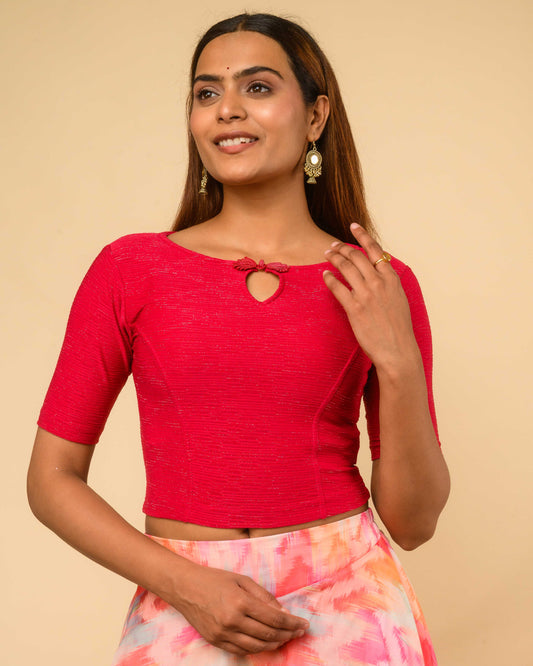 Yashi Red Jacquard Glitter Effect Readymade Saree Blouse – Advi