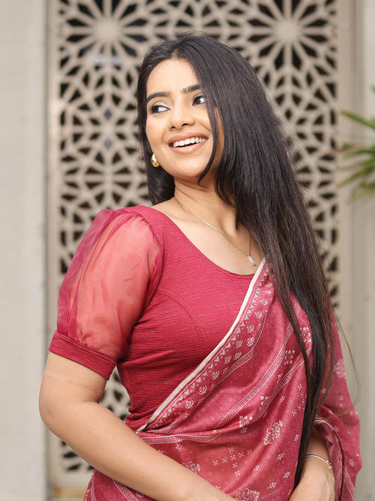 Vaayu Maroon Organza Puff Saree Blouse – Designer Stretchable by Advi