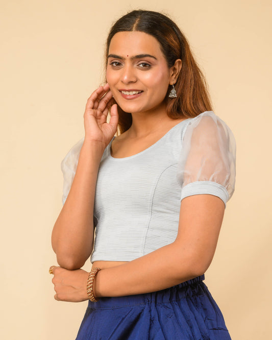 Vaayu Gray Organza Puff Saree Blouse – Designer Stretchable by Advi