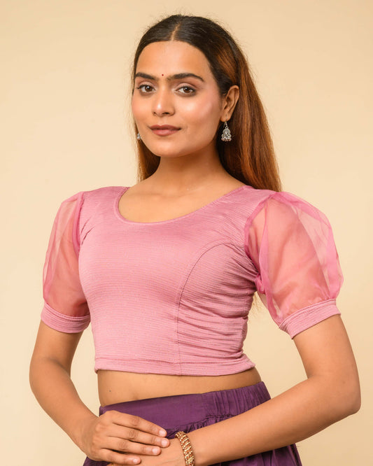 Vaayu Onion Pink Organza Puff Saree Blouse – Designer Stretchable by Advi
