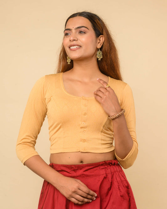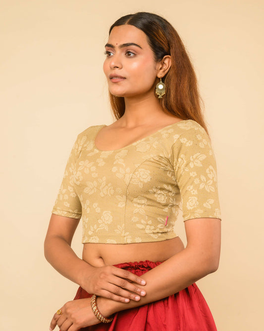 Yashi Beige Jacquard Glitter Effect Readymade Saree Blouse – Advi