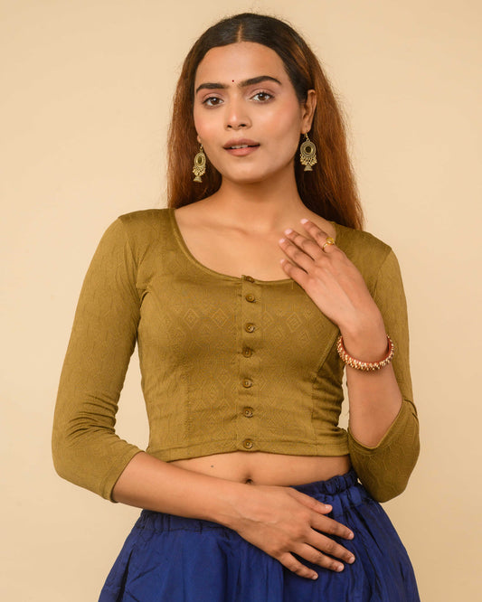 Sakhi Mehendi Green Jacquard Long Sleeve Readymade Saree Blouse – Advi