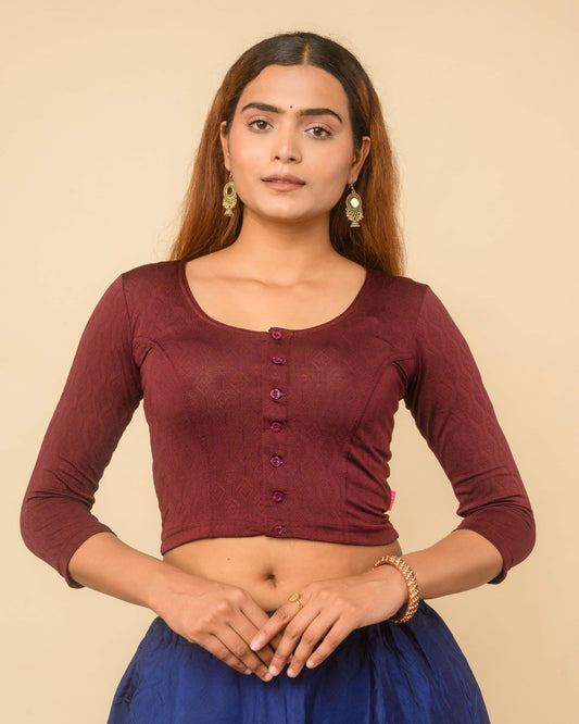 Sakhi Maroon Jacquard Long Sleeve Readymade Saree Blouse – Advi