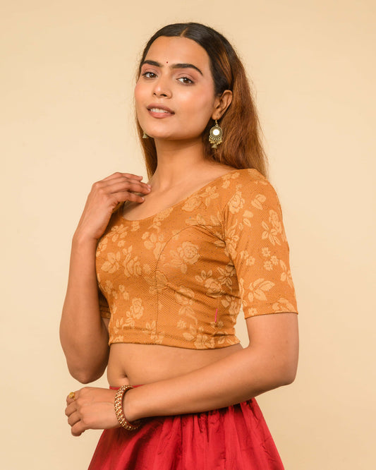 Yashi Brown Jacquard Glitter Effect Readymade Saree Blouse – Advi