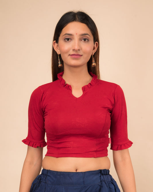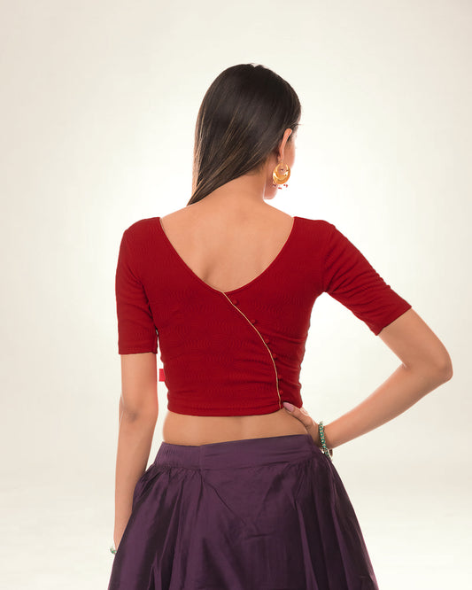 Radha Maroon Stretchable Blouse with Back Potli Buttons by Advi