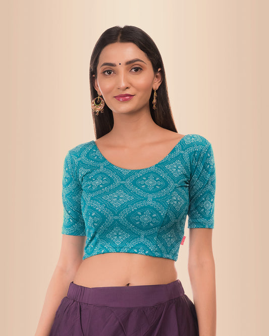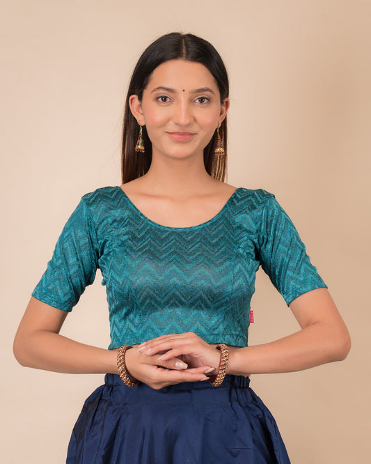 Nandini Geometric Pattern Rama Green Melange Stretchable Blouse Workwear Advi