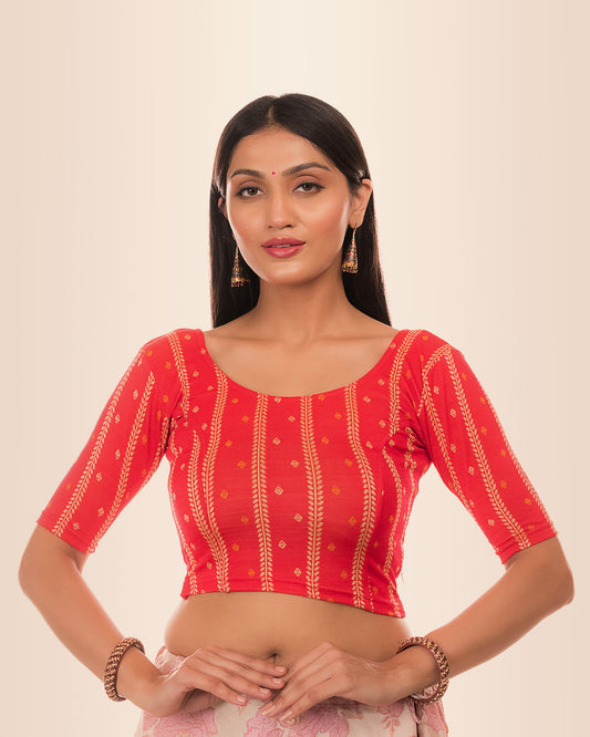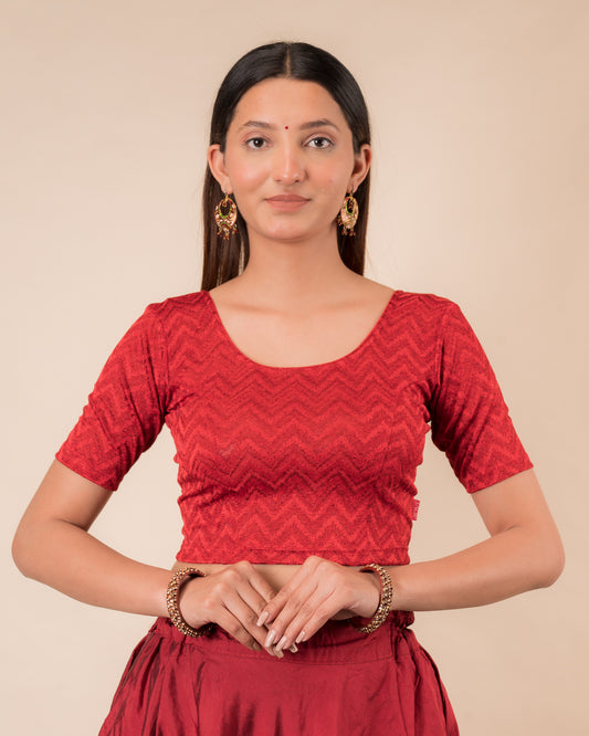 Nandini Melange Zig Zag Red Textured Readymade Blouse Everyday wear Advi