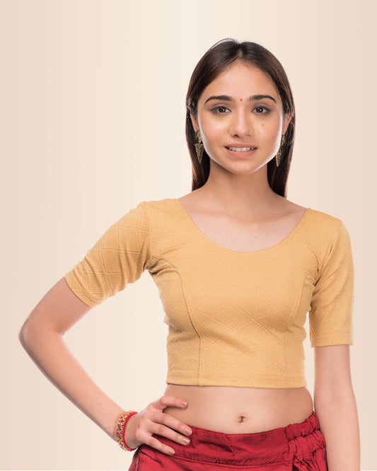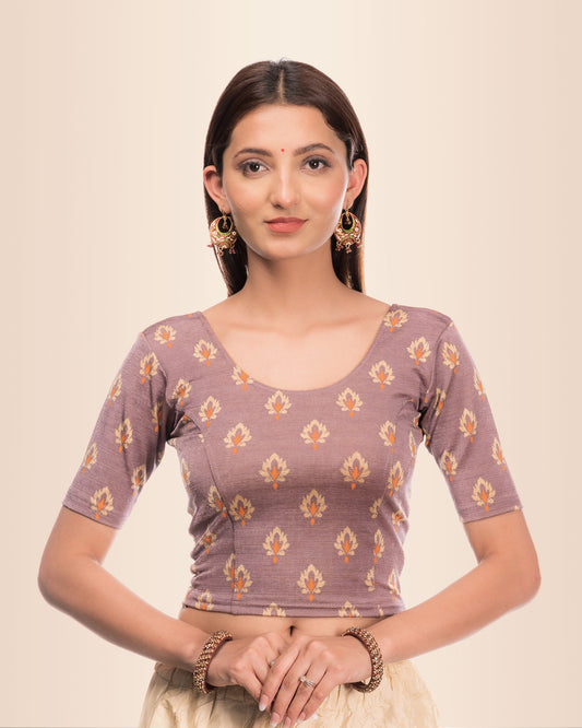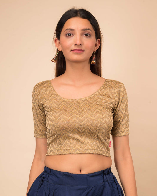 Nandini Zig Zag Pattern Fawn Melange Readymade Blouse Everyday Wear Advi