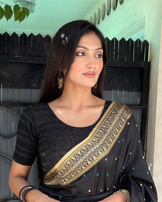 Urvi Black Zari Embellished Metallic Jacquard Blouse with Boat Neck Advi