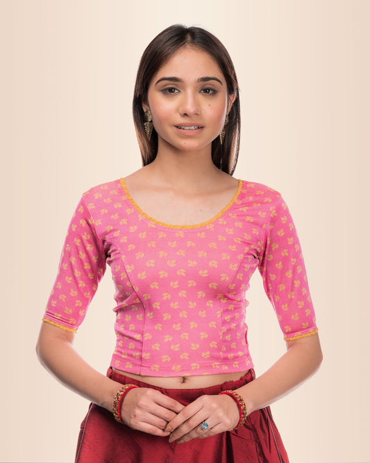 Kalee Pink Two Tone Jacquard Blouse with Frill Neckline Advi