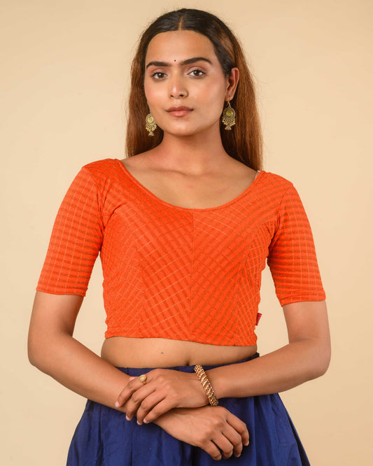 Amba Orange Jacquard Blouse with Zari Stripes and Zig Zag by Advi