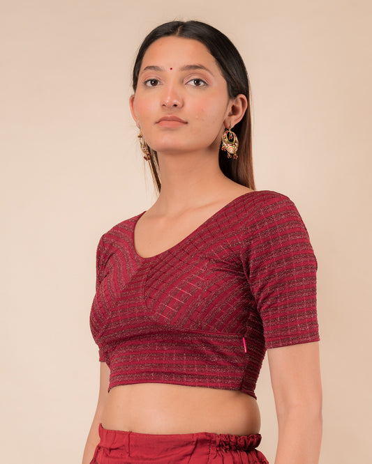 Raag Zari Maroon Stripe Classic Choli Style Blouse – Regular Wear | Advi