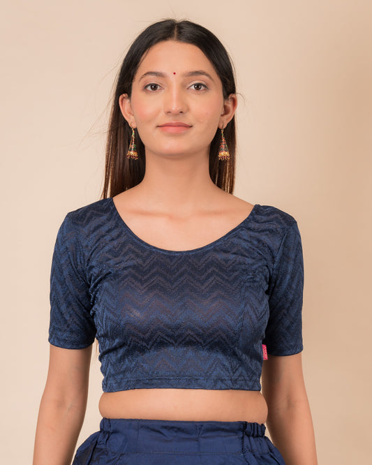 Nandini Zig Zag Pattern Navy Melange Readymade Blouse Everyday Wear Advi