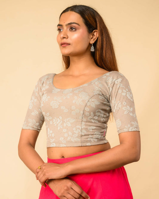 Yashi Gray Jacquard Glitter Effect Readymade Saree Blouse – Advi