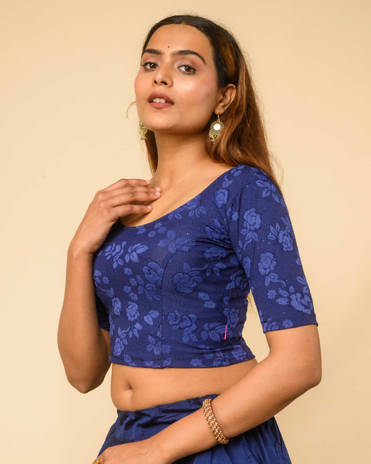 Yashi Navy Jacquard Glitter Effect Readymade Saree Blouse – Advi