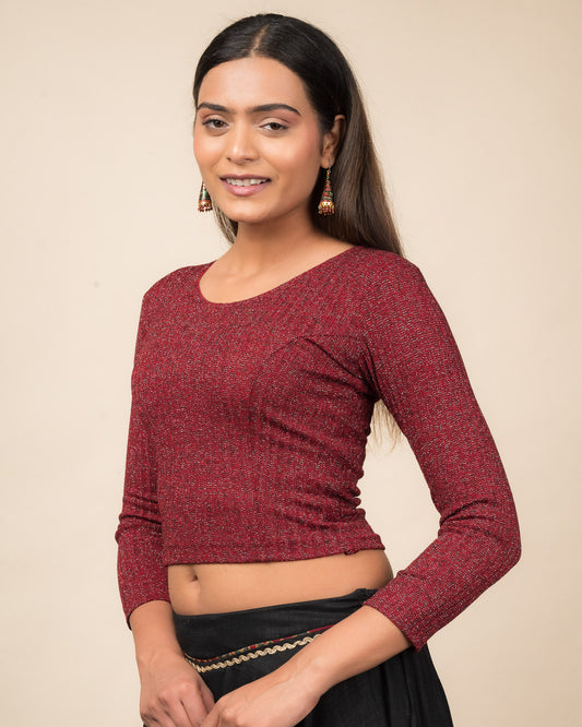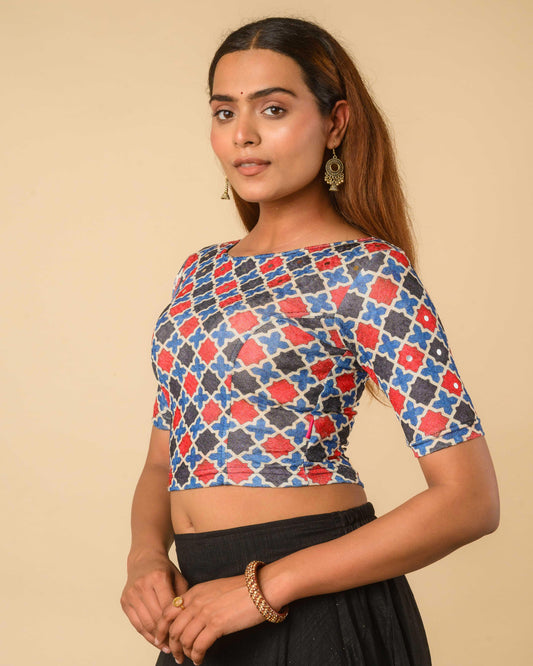 Manek Red Mirror Ajrakh Saree Blouse – Festive Stretchable by Advi