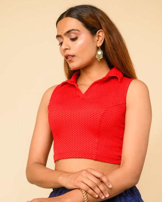 Daftar Red Gingham Sleeveless Stretchable Saree Blouse Advi
