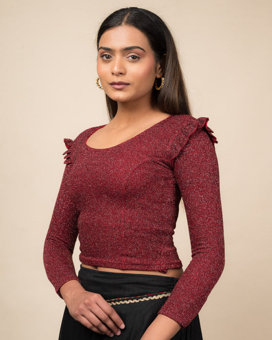 Shillong Sweater Ruffle Knit Metallic Lurex Long Sleeve Stretchable Slip On Blouse