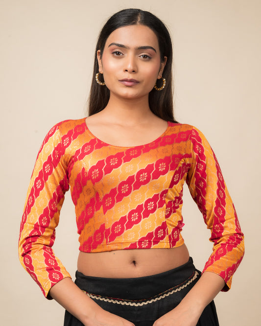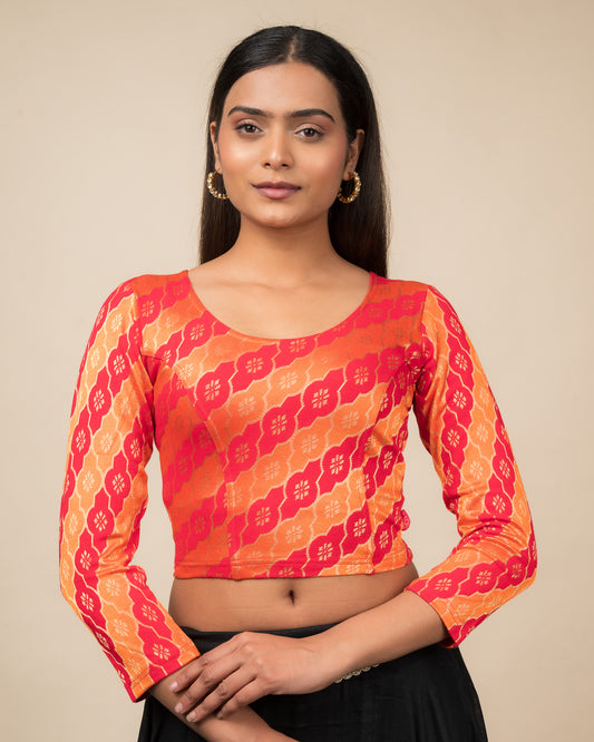 Shillong Winter Multicolour Persian Jaal Long Sleeve Stretchable Saree Blouse