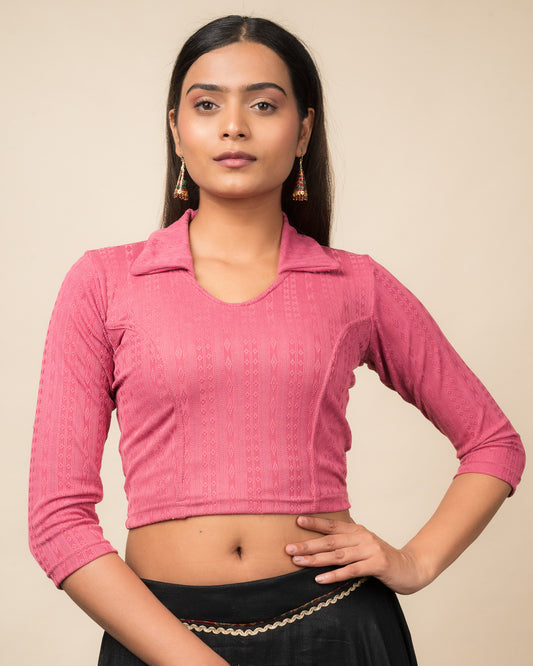 Rakhi Pink Ikat Striped Collar Long Sleeve Slip On Blouse advi