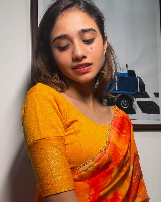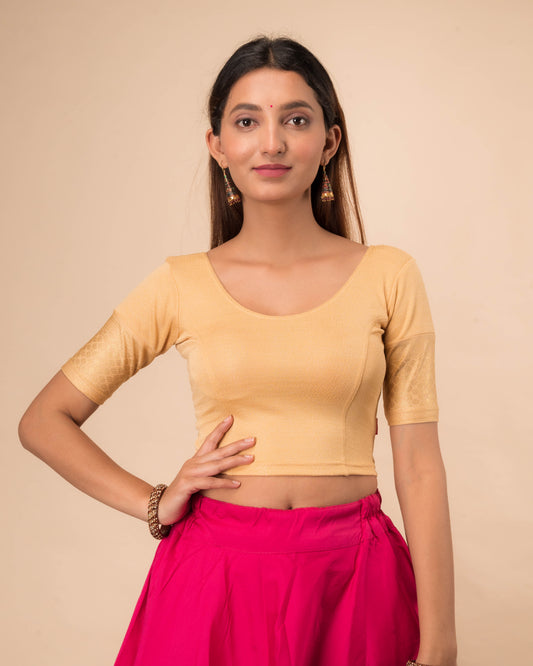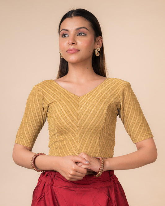 Aabha Gold Blouse – Stretchable Gold Design with Melange Finish by Advi