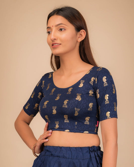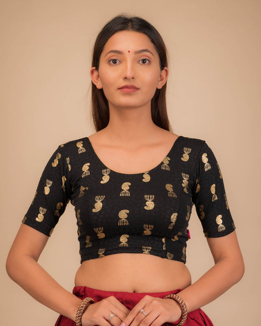 Jhumki Rani Jhumki Gold Foil Print Elbow Sleeve Stretchable Blouse by Advi