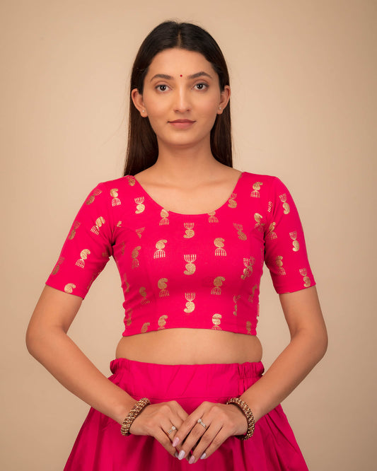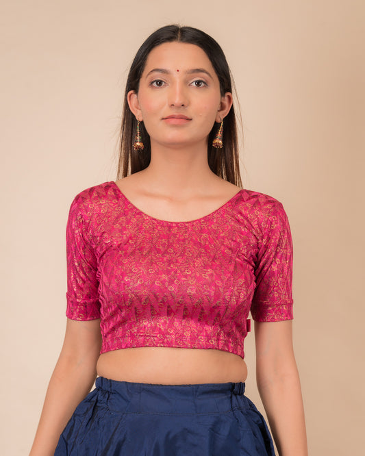 Aabha Pink Stretchable Blouse With Floral Gold on Classic Melange Advi Everyday Fit