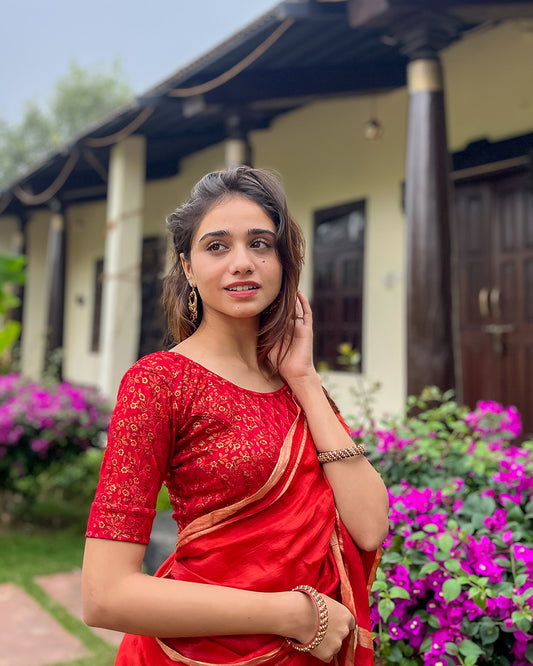 Aabha Red Blouse – Advi Melange Ready to Wear with Elegant Gold Detailing